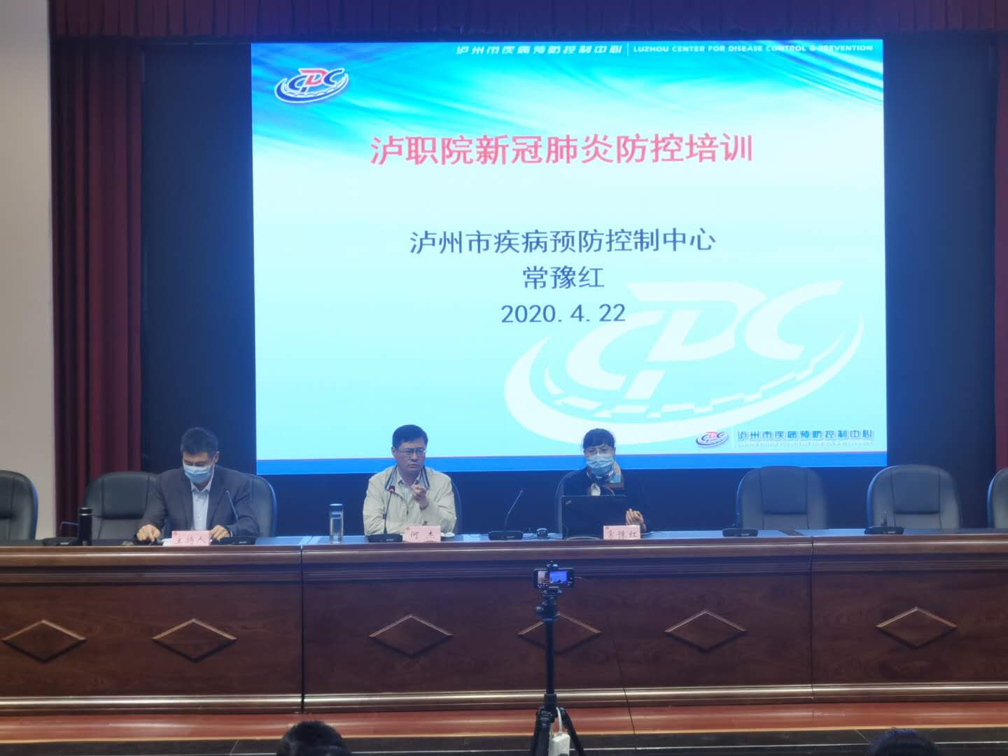 本次培训会邀请了泸州市疾控中心常豫红主任医师前来授课,会议由学校副院长张直明主持。培训前学校党委书记何杰做了动员讲话,他提出,要突出重点,把牢“两个必须”,做好学生复学准备;要以人为本,科学防控,做好学生到校后的学习生活保障;要明确责任,落实到人,着重关注返校后学生身心健康。常豫红分别围绕“高校为何迟迟不开学、泸州市当前防控情况、泸职院开学主要的风险是什么、如何做好新冠肺炎防控工作”等问题开展专题培训。