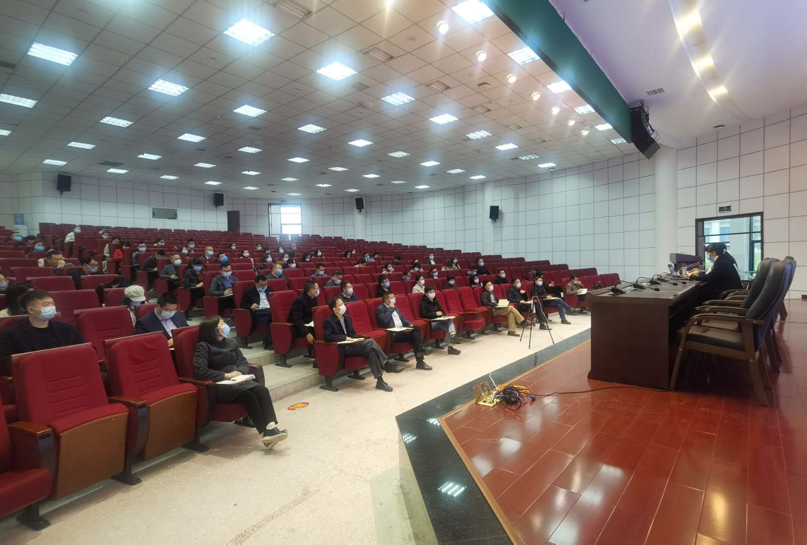 为全面做好我校新冠肺炎疫情防控工作,认真贯彻落实省市区各级防疫文件精神和《中华人民共和国传染病防治法》要求,切实增强我校疫情防控工作成效,保护广大师生身体健康,为复学工作打下坚实基础,4月22日下午,我校召开新冠肺炎疫情防控培训会。培训会主会场设在学校求实厅,下设十余个分会场,采取网络直播形式进行培训。全校教职员工、物业人员、食堂及超市等人员参加了此次培训会议。