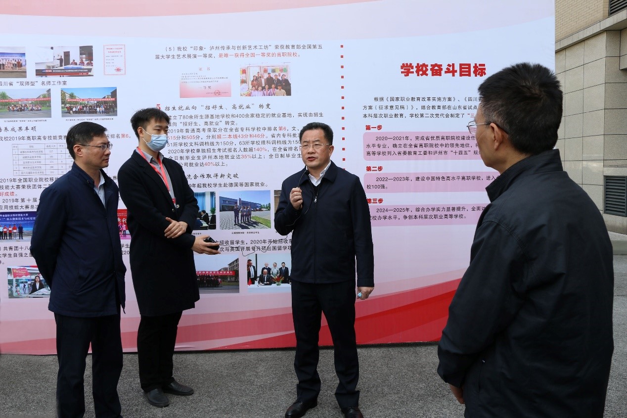 刘强强调,近年来,泸州市职业教育蓬勃发展,市属泸职院走出了一条“产业+专业”的产教融合办学新路子,知名度和影响力显著提升。随着经济社会的发展,职业教育的重要性日趋凸显。要办好教育事业、“办好让人民满意的教育”,普通教育与职业教育就必须同频共振、齐头并进,让职业教育更好地服务于地方产业发展和经济建设。