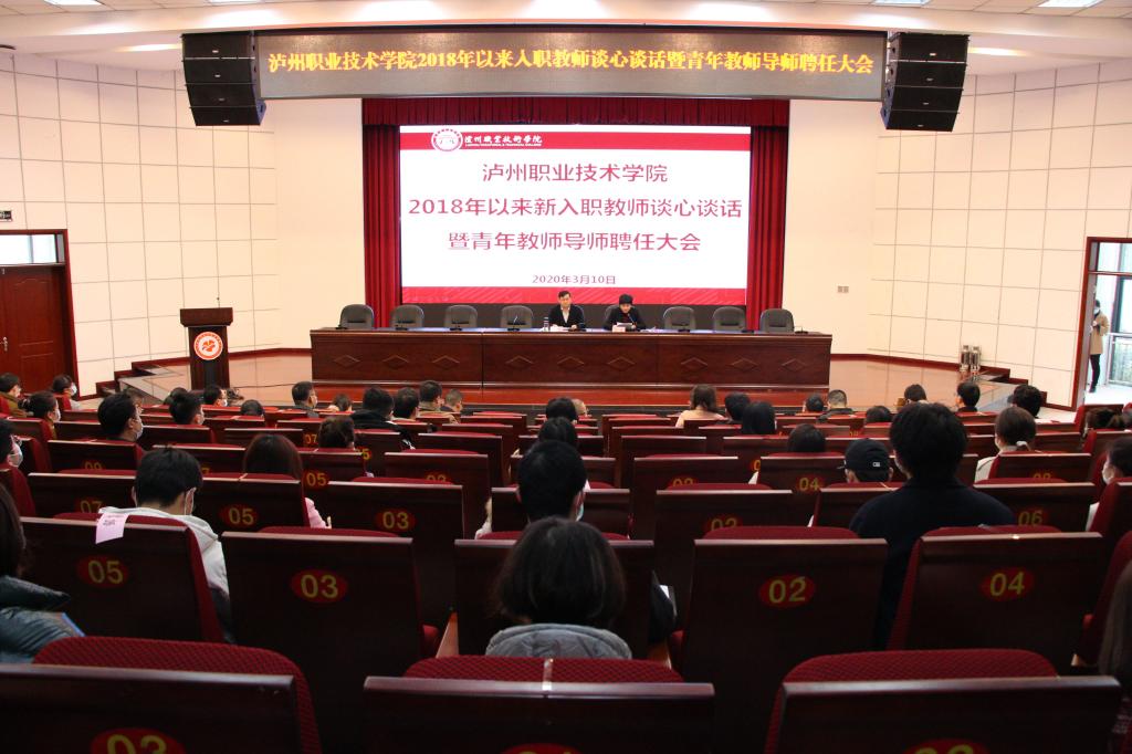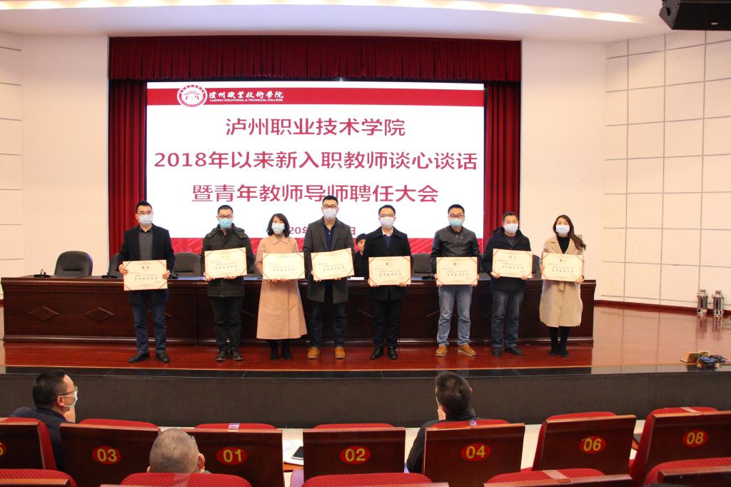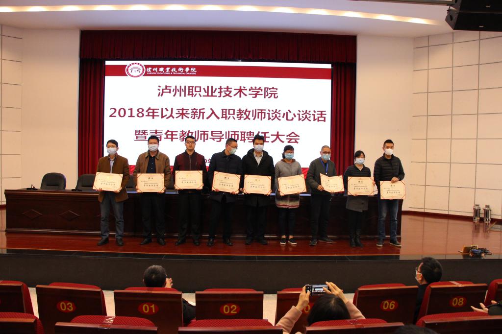 最后,张爽宣读了《泸州职业技术学院关于2019年以来新入职青年教师(第二批)导师聘任的通知》,何杰和张爽为黄顺红等十八位青年导师颁发了聘书。