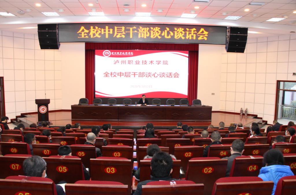 3月2日上午,学校在求实厅召开新学期中层干部谈心谈话会,学校党委书记何杰深刻分析了学校面临的形势,布置了2020年学校的重点工作,客观分析了学校干部队伍存在的问题,对全体干部谋划发展、带头示范、开拓创新、真抓实干、带好团队、领导艺术等给予了中肯建议,提出了明确要求。