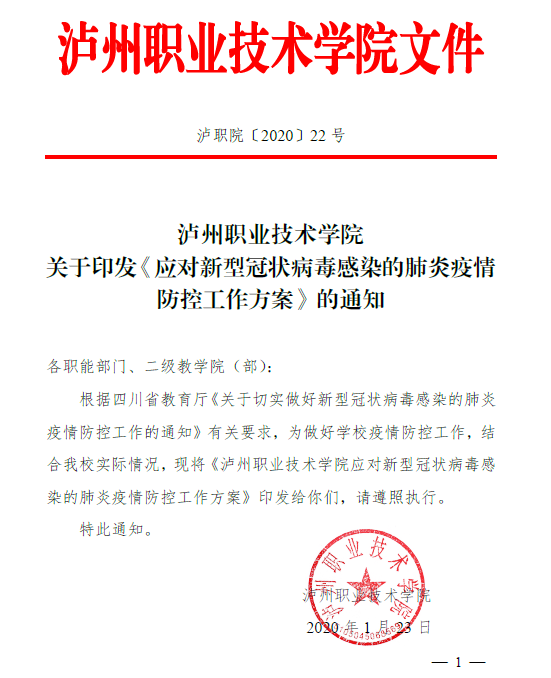 2020年年初,一场突如其来的新型冠状病毒感染的肺炎疫情在武汉发生,并迅速向各地扩散。疫情就是命令,防控就是责任。泸职院师生在学校党委、行政的坚强领导下,积极响应党和国家号召,全员行动,携手共进,谱写了一曲曲战“疫”壮歌。