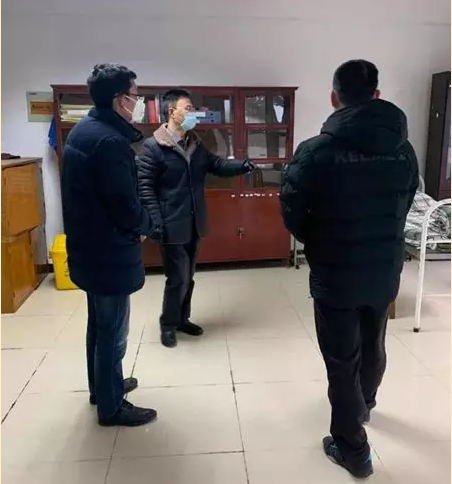 ▲党委书记何杰询问一线工作人员防控工作开展情况