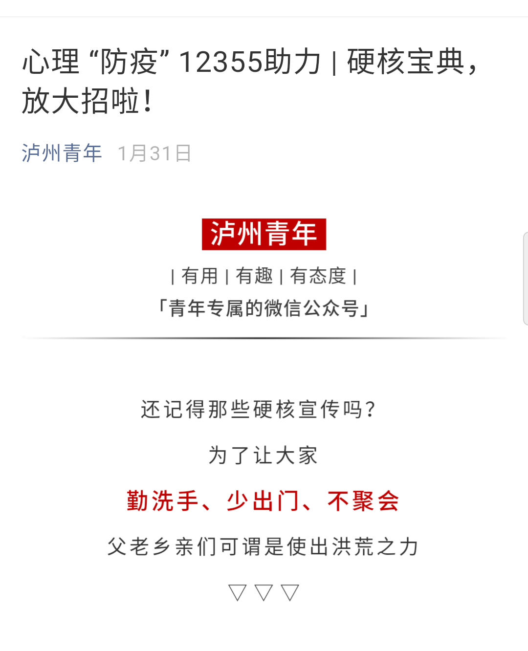 ▲寻芒芒老师在“泸州青年”微信公众号上的推文