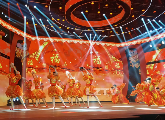 晚会上,我校师生承担了开场舞《酒城年味玉鼠迎春》、小品《又喝多了》、结束歌舞《和谐圆舞曲》三个节目的演出。