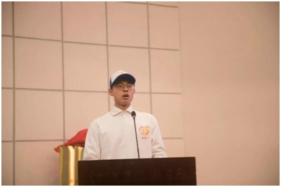 青年志愿者代表西南医科大学2018级医学影像系学生江沅峰发言。江沅峰说,青年,是人生最美好的时光,只有奋斗才能成为青春最厚重的底色,新时代的新青年将踏实勤奋、志存高远,以青春书写人生,用热血奉献祖国。