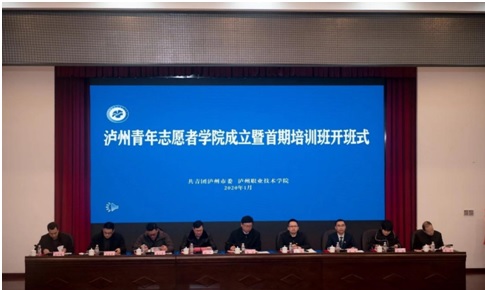 1月7日,泸州青年志愿者学院成立暨首期培训班开班仪式在泸州职业技术学院求实厅举行。团省委副书记,省青联主席唐经天,市委常委、市总工会主席、自贸区川南临港片区党工委书记陈日,学校党委书记何杰,党委副书记张爽,团省委社联部副部长王之昊,市委宣传部机关党委书记方圣明,市民政局副局长卓彬,市财政局机关党委书记刘明春,团市委领导班子成员,各区县团委书记,在泸高校和市直属学校团委书记,泸州老窖,公交公司,国网供电,烟草公司等团组织负责同志,市青联,市青企协秘书长,以及各高校和中职学校骨干青年志愿者代表参加了开班仪式。开班仪式由团市委党组书记王波主持。
