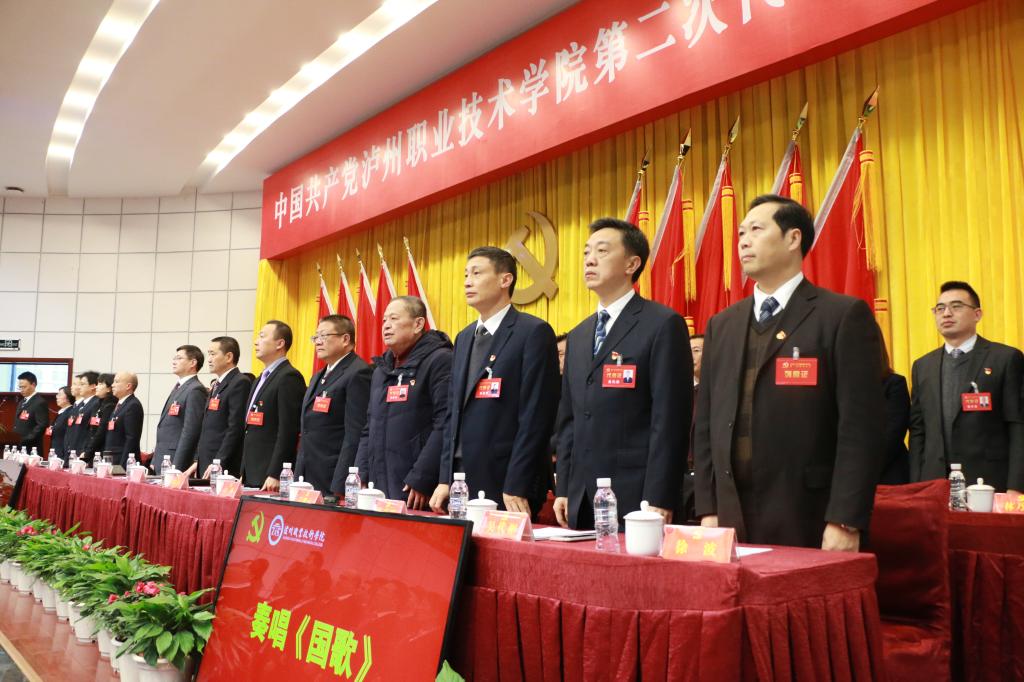 1月3日上午9点,在雄壮的国歌声中,中国共产党泸州职业技术学院第二次代表大会在求实厅隆重开幕。本次大会是学校在深入学习贯彻党的十九大精神和全国教育大会精神,齐心书写学校发展之笔、奋进之笔的关键时期召开的一次重要会议。大会的主题是以习近平新时代中国特色社会主义思想为指导,深入贯彻党的十九大和全国、全省教育大会精神,以《国家职业教育改革实施方案》为基本遵循,紧紧围绕省委、省政府“一干多支、五区协同”“四向拓展、全域开放”和市委、市政府“争创全省经济副中心,推动高质量发展”战略部署,准确把握新时代新形势新要求,全面落实立德树人根本任务,不忘初心,锐意进取,抢抓机遇,改革创新,凝心聚力,奋发有为,以地方离不开、行业都认可、国际有影响为目标导向,建设省内领先、国内一流的高水平高职学校,争创本科层次职业高等学校。