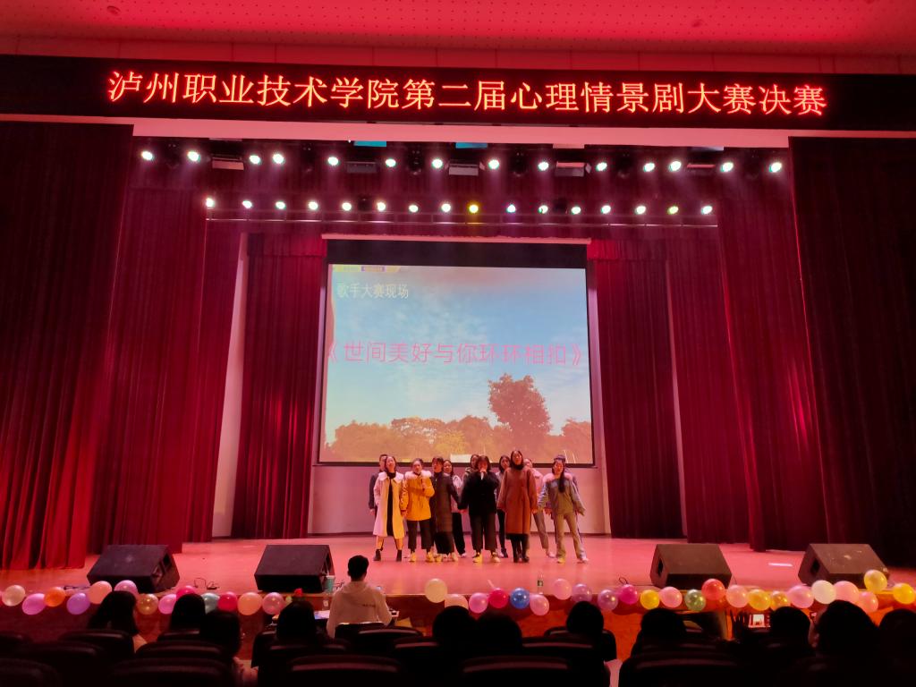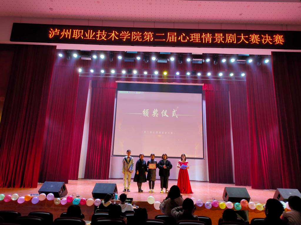 2019年12月10日晚上,由心理发展中心主办、心理健康协会承办的“泸州职业技术学院第二届心理情景剧大赛”在我校玉阶素质教育中心举行。学校副院长梁杰,各职能部门、二级学院负责人和教师出席此次大赛。西南医科大学、四川化工学院以及我校上千名学生到场观看了比赛。人文学院潘绿萍副教授、汪玲教授、倪海珍教授、付先全副教授、泸州市教科所教研员谢梦、彭雪明老师和寻芒芒老师担任评委。