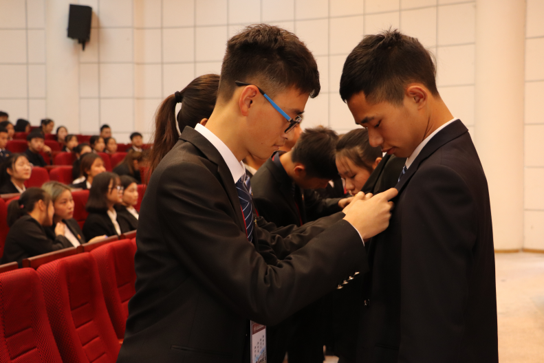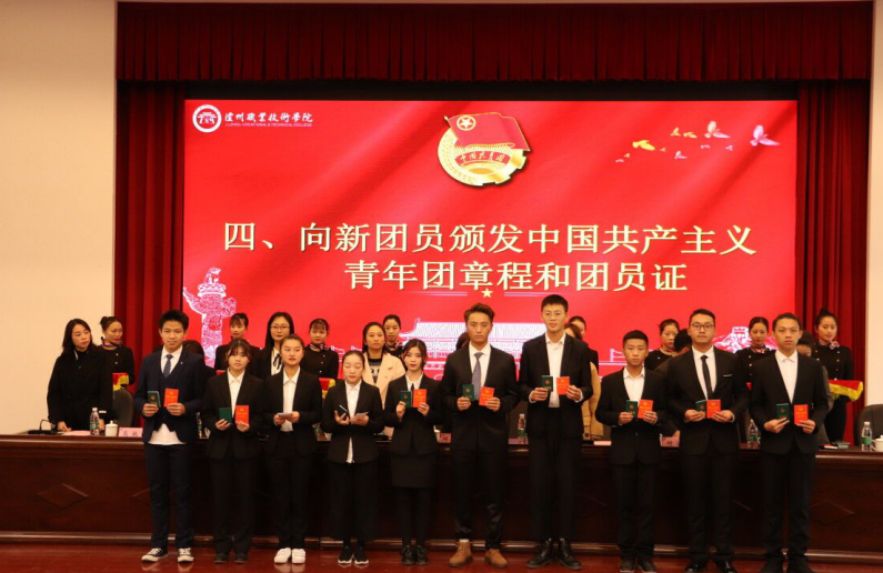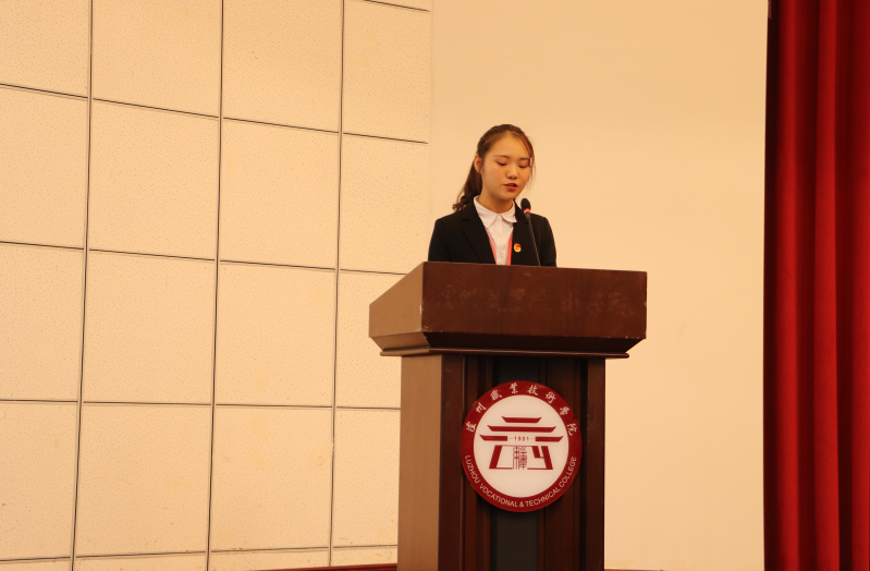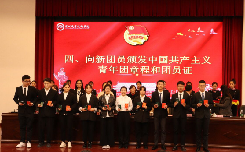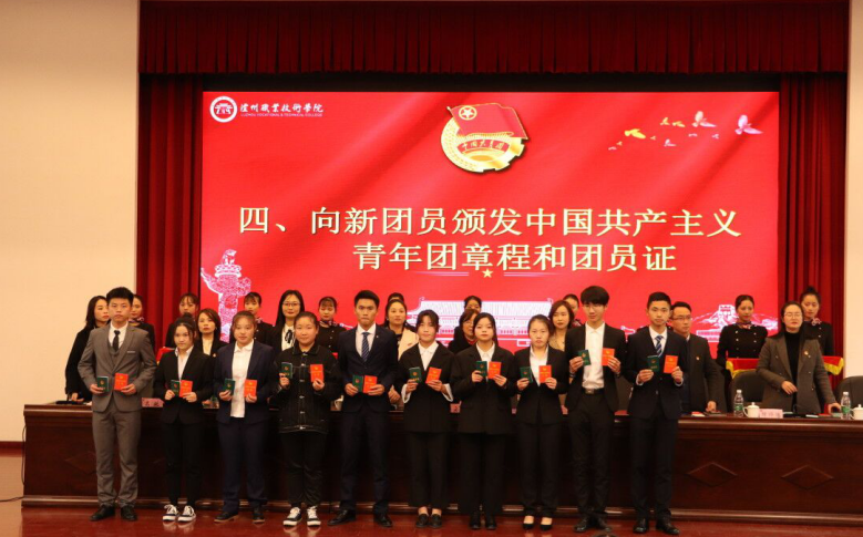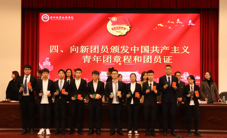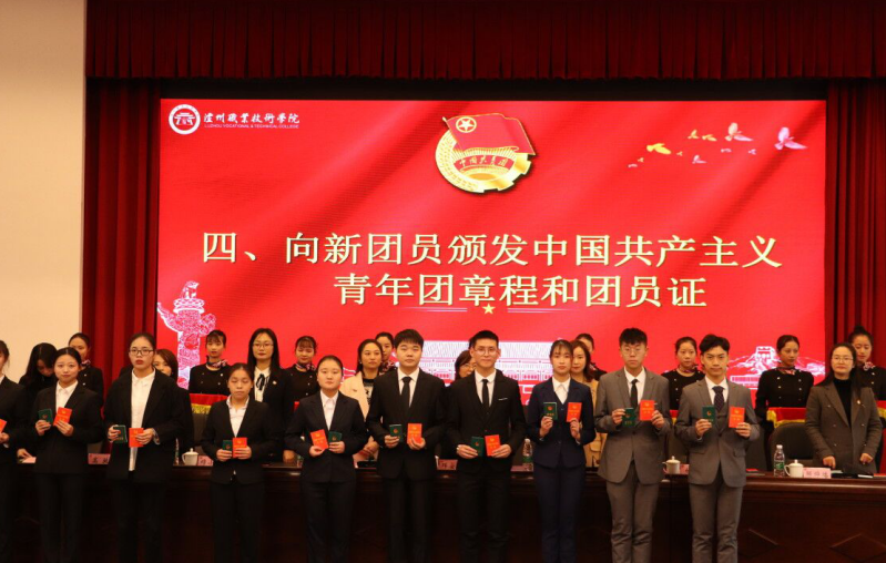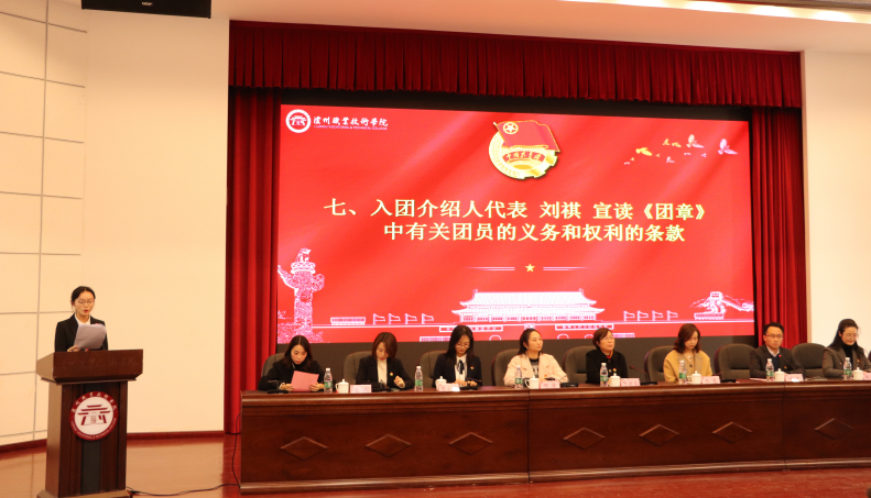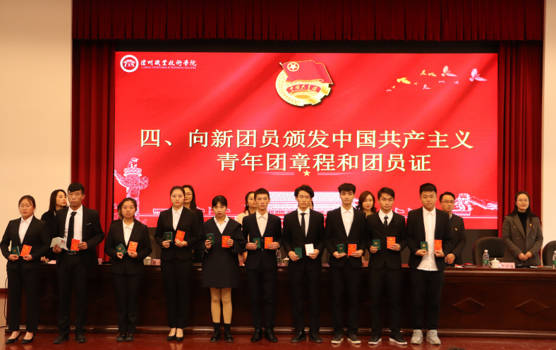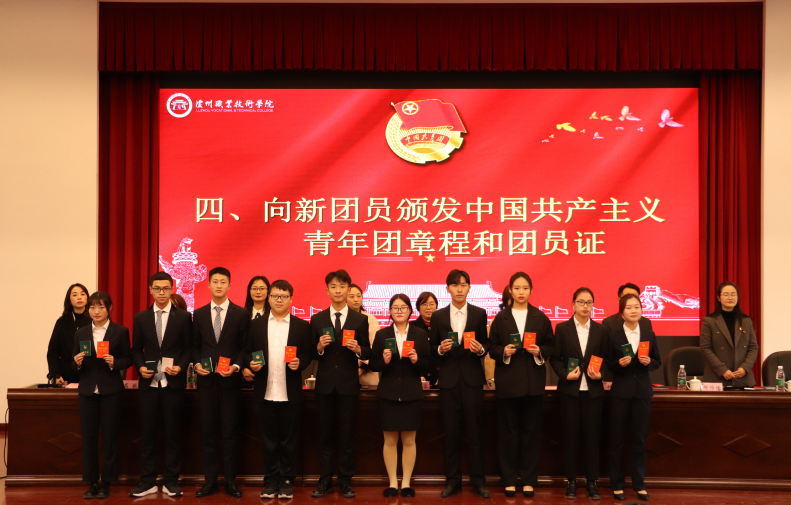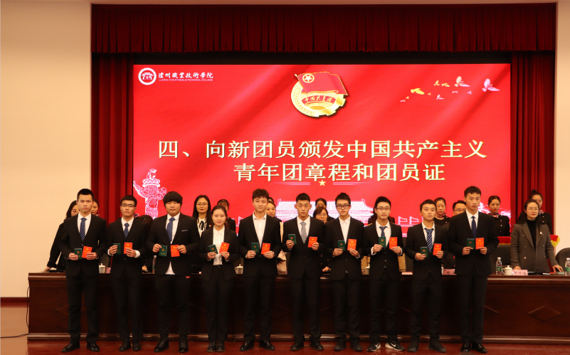 何源宣读了《2019年泸州职业技术学院新团员名单》。本次新发展团员均严格按照团中央的规定程序和要求,经个人书面申请、团总支确定入团积极分子、广泛征求意见、参加团课培训、注册成为志愿者、团总支召开支委会、团支部大会通过无记名投票表决、校团委审批等流程,经三次公示无异议后最终批准100名同学为共青团员。