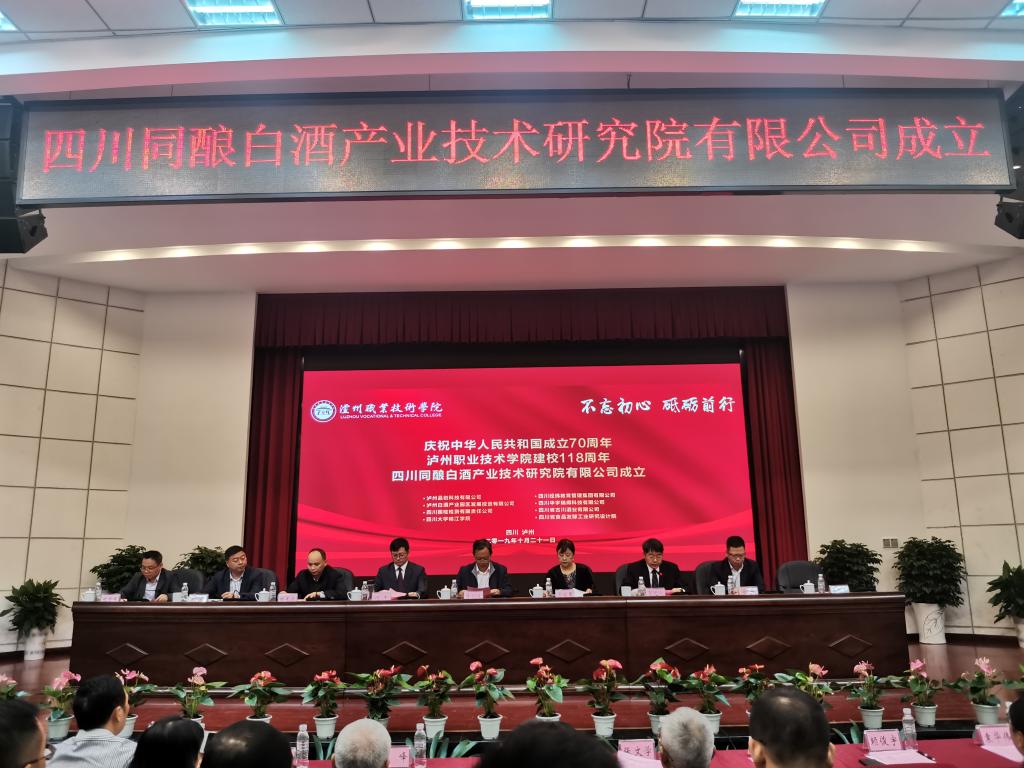 10月21日上午,在泸州职业技术学院建校118周年的喜庆日子里,四川同酿白酒产业技术研究院有限公司成立大会在泸州职业技术学院求实厅隆重举行。泸州市人大常委会副主任陈剑波,泸州市人民政府副市长马宗慧,泸州职业技术学院党委书记何杰,四川省科技厅战略规划与政策法规处处长杨光垚,中国酒协副秘书长甘权,泸州老窖股份公司总经理林锋,四川省白酒金三角酒业协会副秘书长杨荣生,四川大学锦江学院以及泸州市科知局、泸州市酒发局、泸州职业技术学院等单位的领导出席会议。成立大会由泸州职业技术学院院长贺元成主持。