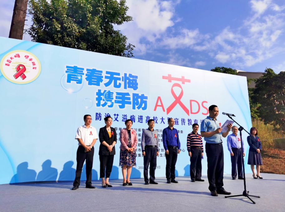 10月19日上午,由省卫生健康委、省教育厅指导,省计划生育药具管理中心主办,省疾病预防控制中心、泸州职业技术学院、泸州市妇幼保健和计划生育服务中心和四川日报报业集团·家庭与生活报协办的“青春无悔 携手防艾”——防治艾滋病进高校大型宣传教育活动(泸州站)在泸州职业技术学院举行。省卫生健康委重传处副处长赵亮,省教育厅体卫艺处调研员卢旭,泸州职业技术学院副院长徐波,省计划生育药具管理中心、省疾控中心和泸州市卫生健康委等相关负责同志出席活动。