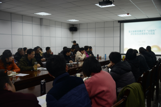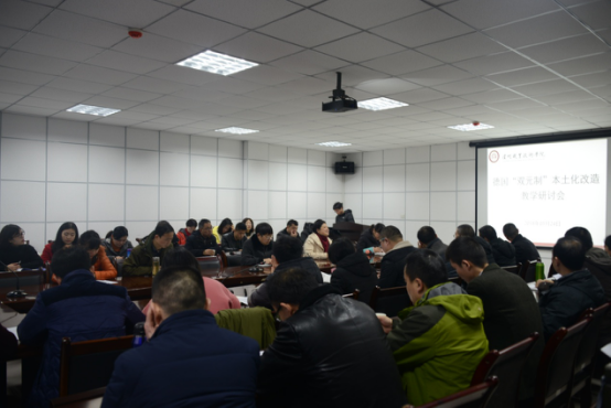 本站讯(信息来源:机械系)2018年1月24日,学院举行德国“双元制”本土化改造教学研讨会,围绕中德合作“双元制”职业教育模式本土化实践更进一步展开了成果的汇报和讨论,分享专业建设和课程建设的经验和成果。学院院长贺元成教授、教务处、人事处、督导中心、对外合作办公室等部门领导和老师、以及机械系全体教师参加会议。教务处处长潘绿萍和督导中心主任汪玲相继主持研讨会。