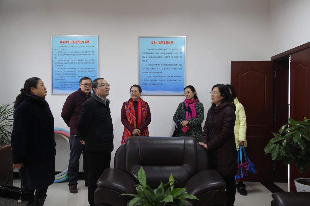 张主席一行认真查看了职工书屋、教工之家、职工素质拓展基地和母婴室等工会活动阵地的建设情况,学院领导向张主席一行汇报学院工会工作和职工教育培训工作开展情况。张主席充分肯定了我院取得的成绩,然后对我院的工会工作和职工教育培训提出了宝贵的意见。张主席指出:教职工工作任务重、工作压力大,学院工会要进一步完善职工阵地建设,给他们提供一个健康向上的文化活动场所,营造一个温暖的“家”;要想方设法为教职工办实事、办好事;要发挥好工会的桥梁纽带作用,为学院党政和全体教职工做好服务;要加强职工教育培训示范点建设,打造职工教育培训品牌。