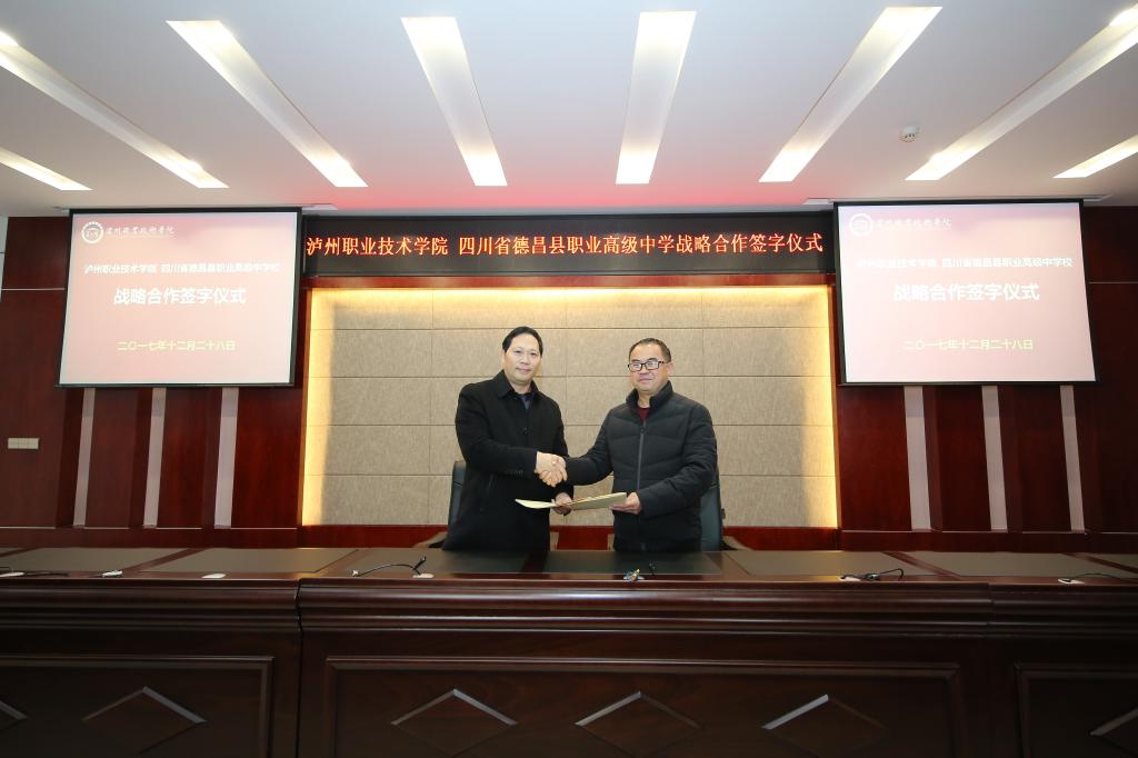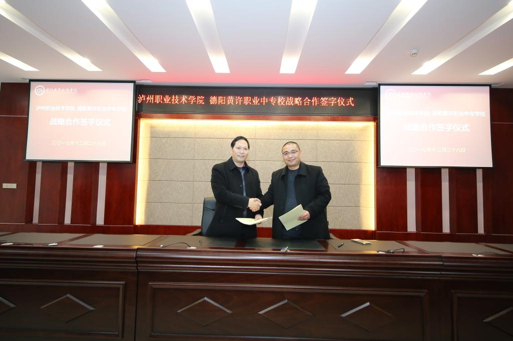 本站讯(信息来源:招生就业处)2017年12月28日下午1点,学院与四川省绵阳职业技术学校、四川省德昌县职业高级中学校、德阳黄许职业中专校战略合作签字仪式在学院综合楼510会议室隆重举行,学院副院长徐波和四川省绵阳职业技术学校副校长韩梅等领导出席签字仪式。