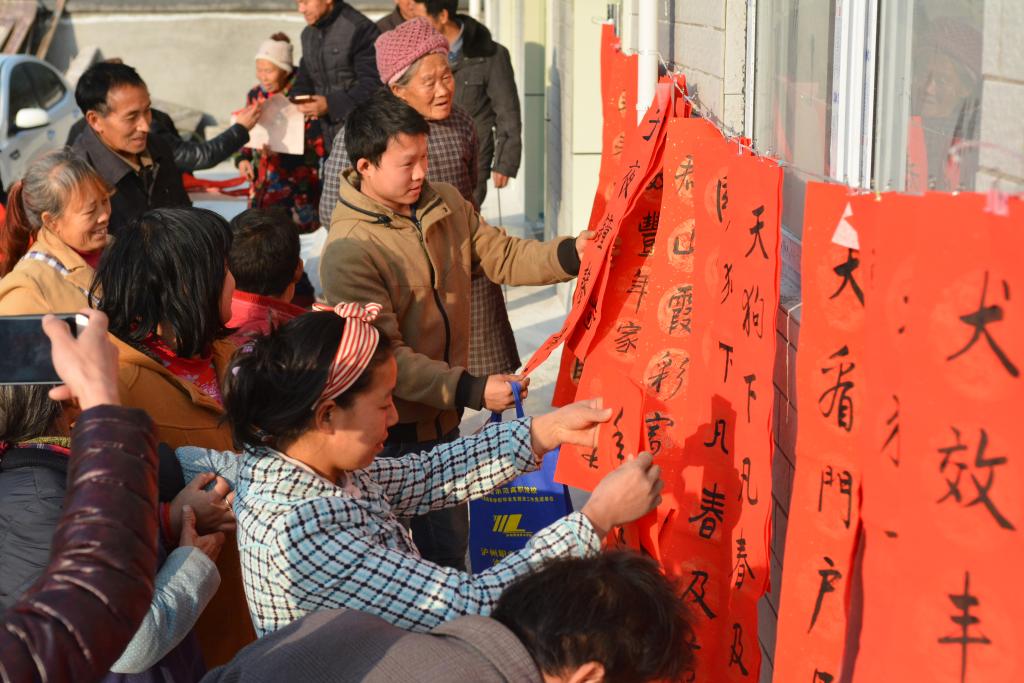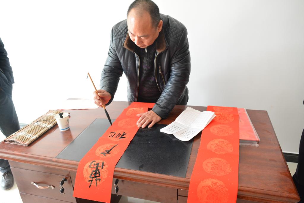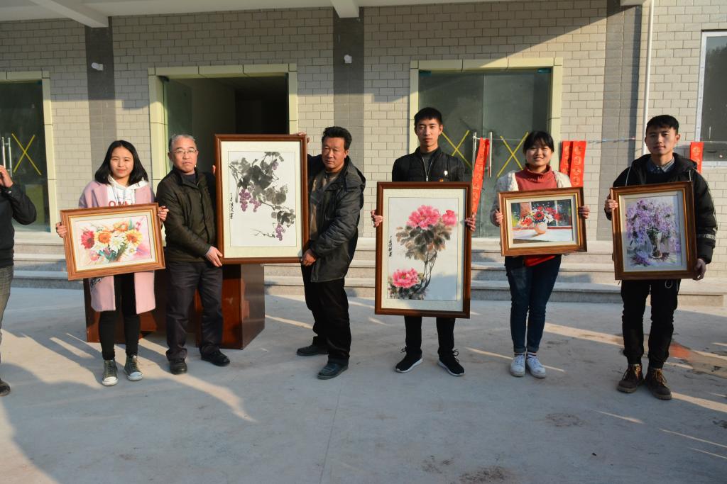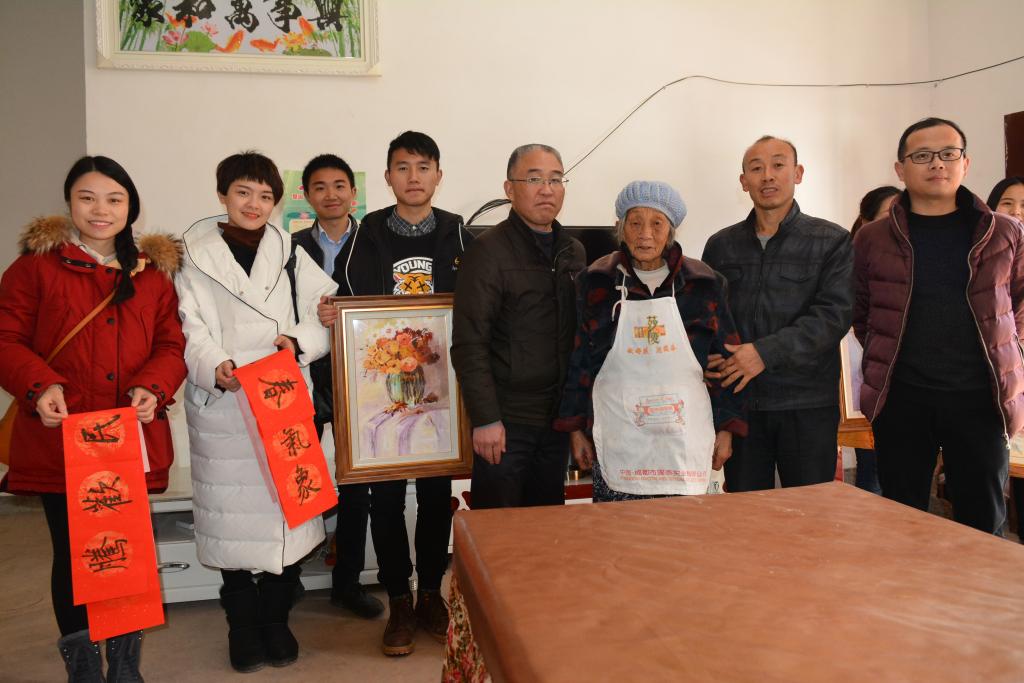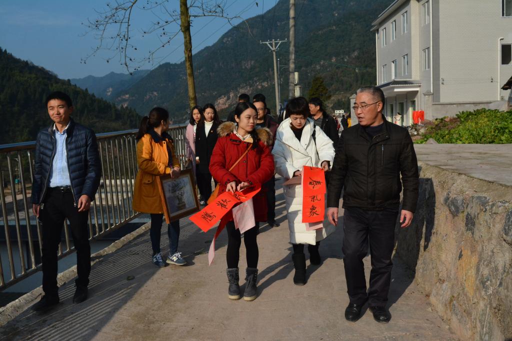 户外的文化扶贫掀起了本次活动的高潮。人文系、艺术系、民盟支部给村民赠送了大量的精美字画,邹静波老师现场书写、赠送春联。异趣横生的书画作品和春联,让村民惊叹的同时也感受到了别样的温暖。扶贫队伍还为一对一帮扶的农户提前送去春节的慰问品,将党和政府的关怀和温暖送到村民手里,助力他们打赢脱贫攻坚战。
