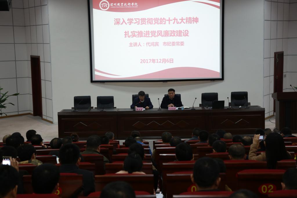 代鸿宾从习近平总书记在党的十大九大上的报告关于党风廉政建设论述“不敢腐的目标初步实现,不能腐的笼子越扎越牢,不想腐的堤坝正在构筑,反腐败斗争压倒性态势已经形成并巩固发展”引入,围绕“推进全面从严治党,筑牢拒腐防变能力”主题展开讲解。分析了人性的弱点和影响构筑拒腐防变能力的内因、外因。结合党的六大纪律、特别是联系近年来学校领域发生的违纪违法问题,以“当那一天真的来临”为告诫,列举了“主体责任不落实”“作风不民主”“违规插手项目工程”等28种容易触犯的常见的风险及其表现;结合新时代新形势下党中央巩固反腐败斗争压倒性态势、夺取反腐败斗争压倒性胜利坚如磐石的决心和“坚持无禁区、全覆盖、零容忍,坚持重遏制、强高压、长震慑”的鲜明态度及一系列“打虎、拍蝇、猎狐”举措,以“那一天真的不能来临”为劝诫,从风险多、要求严、监督力等层面深刻阐明了筑牢拒腐防变能力的必要性、重要性、紧迫性。最后强调,要加强“不忘初心、牢记使命”主题教育,认清贪之险、牢记贪之害、切忌贪之昏、常思贪之诫、长鸣贪之警,从政治、道德、纪律、法律等各方面筑牢拒腐防线,切实增强拒腐防变的能力和定力。整个报告主题鲜明、内容丰富、分析深刻,特别是鲜活生动的案例发人深省、引人深思、给人教益。