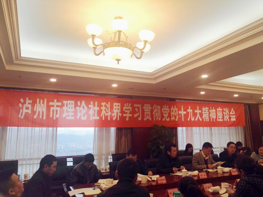 本站讯(信息来源:科技产业处)11月23日上午,在南苑宾馆九楼会议室召开由泸州市社科联举办的“全市理论社科界学习贯彻党的十九大精神座谈会”,学院副院长彭涛、科技产业处副处长(主持工作)王艳戎、博士管理办公室副主任卓佳一行3人出席了此次会议。