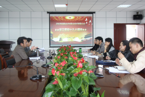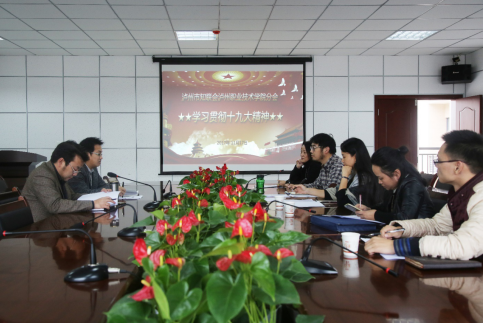 泸州职业技术学院统战部部长熊剑首先介绍了党的十九大概况、党的十九大报告的主要内容,结合党的十九大精神提出了学习工作思路。学院分会理事们一起积极认真地学习了党的十九大报告核心内容与关键词,并各抒己见、交流心得。最后,市知联会会长彭涛表示要认真学习并贯彻党的十九大精神,充分发挥我院知识分子优势,响应党的十九大精神积极开展产教融合,深入推进学院各项重点工作,为把泸州建设成为区域中心城市的教育高地而努力奋斗。