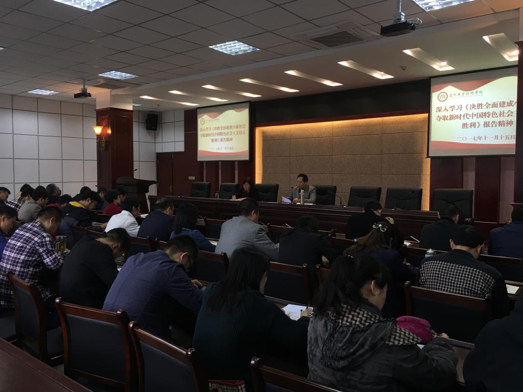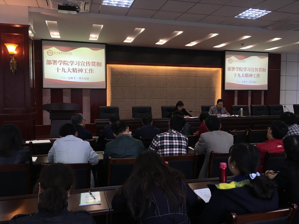 会议学习了《中共四川省委教育工作委员会关于认真学习宣传贯彻党的十九大精神的通知》《中共泸州市委关于认真学习宣传贯彻党的十九大精神的通知》,传达了泸州市高校学习贯彻党的十九大精神扎实抓好思想政治工作座谈会议精神,部署了学院学习宣传贯彻党的十九大精神相关工作。