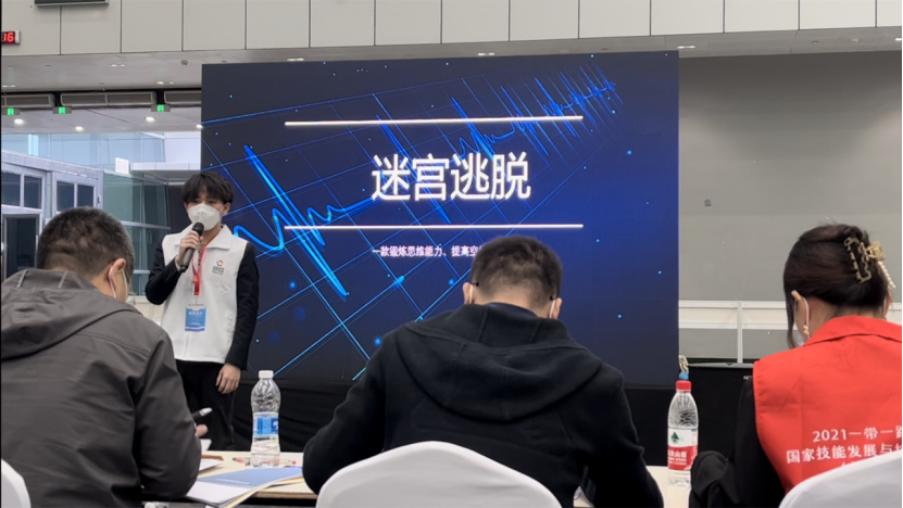 我校学子刘辉在教师陈玲指导下,根据赛前自己制作的迷宫游戏、项目企划书、营销企划书及PPT演讲文稿,在规定时间内对作品进行现场陈述、展示及答辩,最终以第三名的成绩斩获该赛项的二等奖。