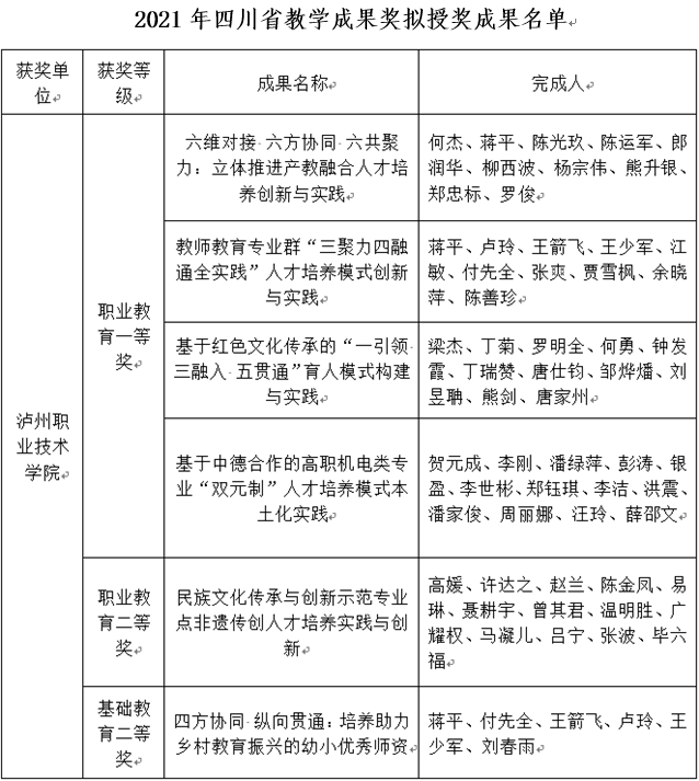 12月24日,四川省教育厅发布“2021年四川省教学成果奖拟授奖成果公示,共评选出2021年四川省教学成果奖拟授奖成果1000项,其中特等奖60项,一等奖260项,二等奖680项。