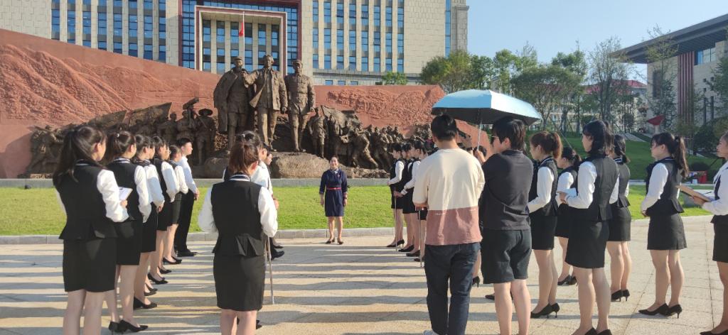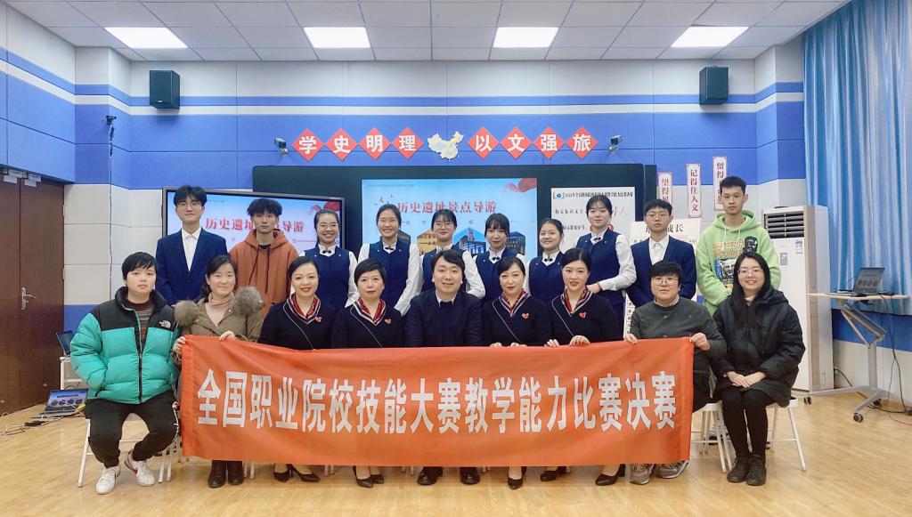 本次比赛中,课程团队结合建党百年,以历史遗址为载体,践行“岗课赛证”融通模式,在技能培养和评价方法中借鉴全国导游资格考试和全国职业院校大学生技能竞赛导游服务赛项标准,将工作岗位要求转化为课程教学内容,对接1+X“研学旅行策划与管理“证书要求,运用“五景五讲”的教学模式,开展沉浸式学习,夯实景点导游员讲稿撰写和景点讲解技能。在注重景点导游技能训练的同时,课程团队把四个景区分别对接“四史”,开发了课程思政体系,将学习革命传统、培养文化自信等贯穿于课堂教学全过程,在培养讲解技能的同时厚植家国情怀。