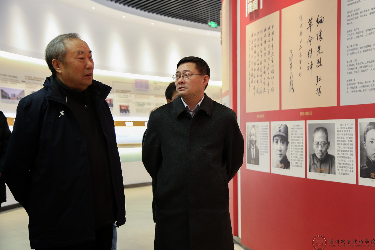 在校史馆,周和平认真观看了馆内展陈,并对一些革命先烈及历史人物的生平传记,进行了考究和点评,提出了诸多建设性意见。他希望我校能以“百年校史文化”为底蕴,更好地构建“红色文化”铸魂模式。