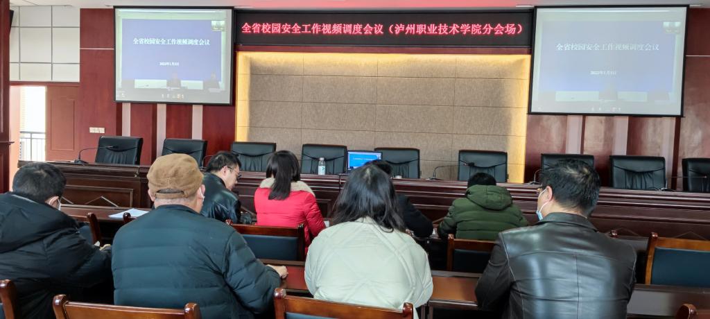 1月5日,四川省教育厅组织召开全省校园安全工作视频调度会议,安排部署寒假及春节期间校园安全工作,四川省教育厅党组成员、机关党委书记李志刚出席会议并讲话。学校在综合楼510会议室设立分会场,学校党委常委、副院长银盈,后勤保卫处(安办)、党政办(保密办)、基建国资处、教务处、科技处、学生工作部等职能部门负责人,校办企业负责人及有关人员参加会议。