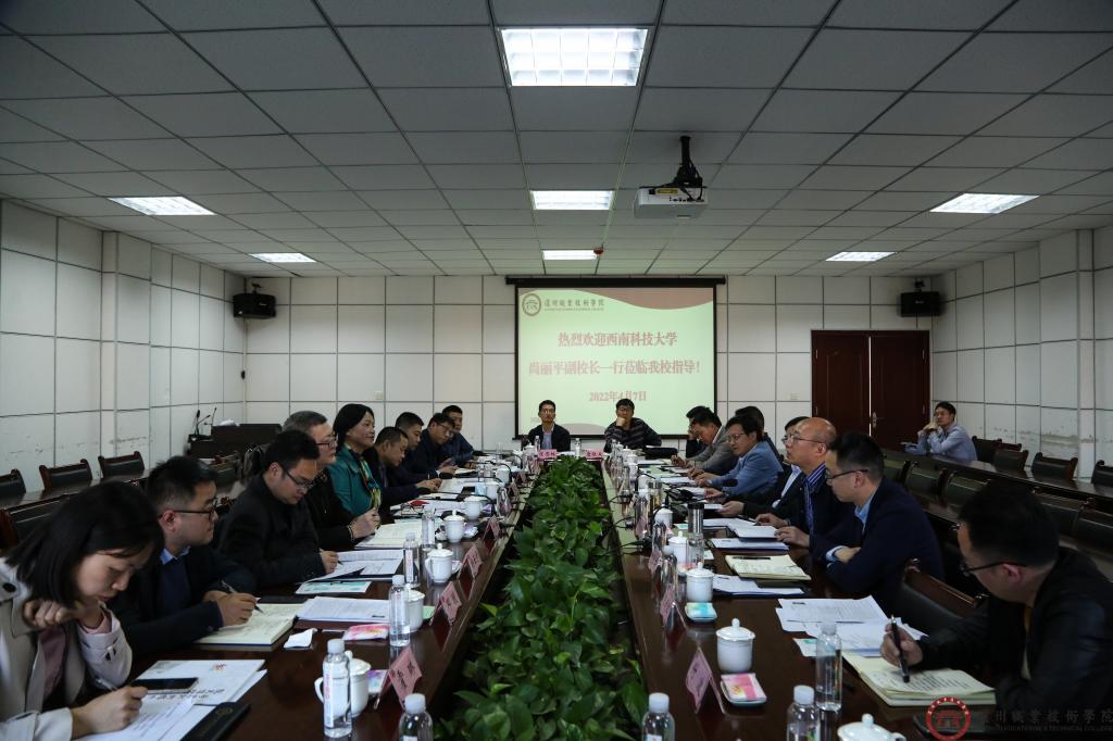 2022年4月7日,西南科技大学副校长尚丽平一行到我校调研交流,学校党委书记何杰、党委副书记、院长谢鸿全及有关部门负责人参加了交流座谈会。