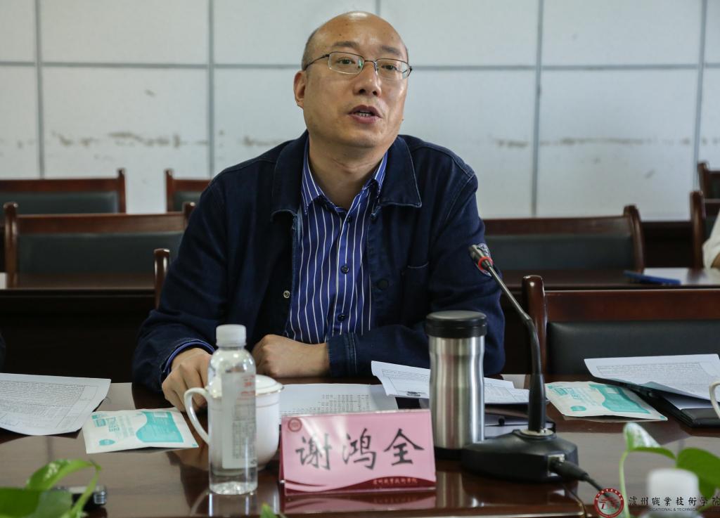 座谈会上,谢鸿全介绍了我校师资力量、人才队伍建设、学科建设、科研成果、校企合作等具体情况。