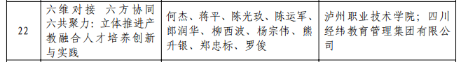近日,四川省人民政府公布了2021年教学成果奖的通知(川府函〔2022〕85号),在基础教育、职业教育、高等教育3个领域共评选出特等奖60项、一等奖260项、二等奖680项。我校6个项目获奖,其中一等奖4项、二等奖2项,展现了学校教育教学改革的水平和风采,创造了学校高水平成果培育的历史记录,多维度、多方位展示了我校在“双高”建设、“提质培优计划行动”“对标竞进、争创一流”等活动中取得的成就。