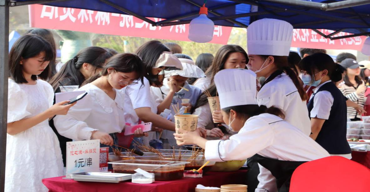 为更好地宣传校园健康饮食文化,丰富同学们业余校园生活,提倡绿色、健康、安全、营养的饮食观念,加强学生食品安全意识,5月22日,后勤保卫处、团委共同在酒城文化创意美食街举办泸州职业技术学院“食韵校园”第四届校园文化美食节。学校党委书记何杰,党委副书记、院长谢鸿全,党委常委、副院长银盈等参加活动。