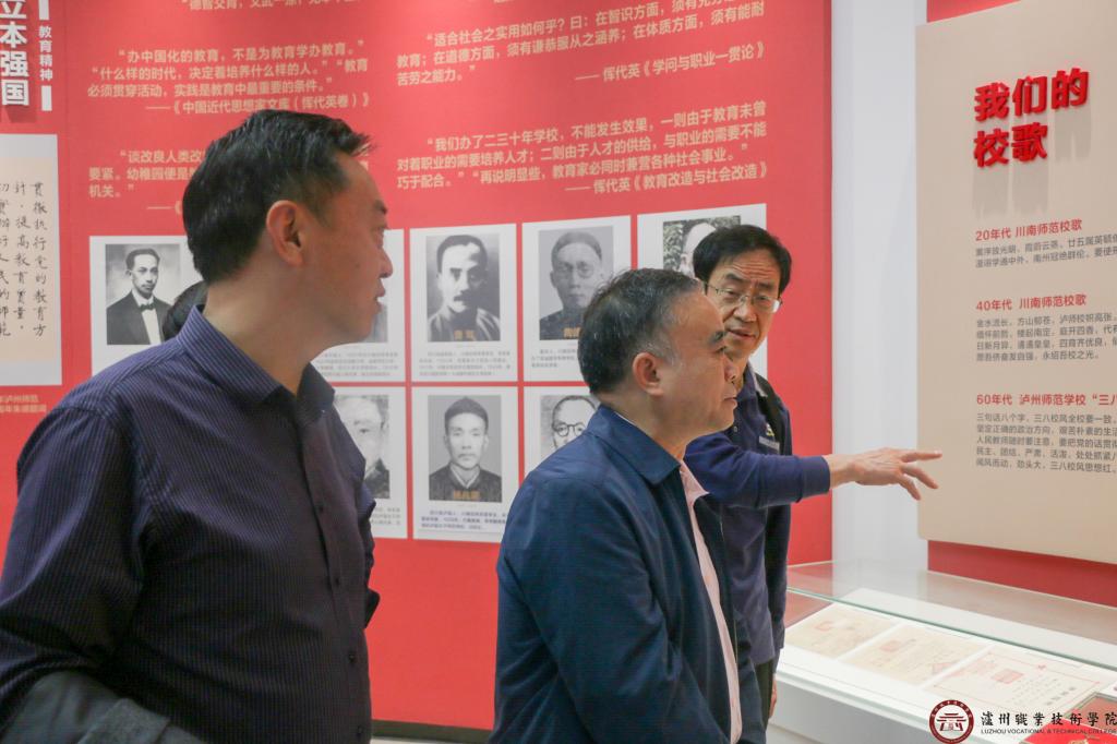 会前,袁华滨实地调研了我校校史馆、大学生创新创业园、经纬家教家风馆及成渝双城经济圈川南公共实训基地。
