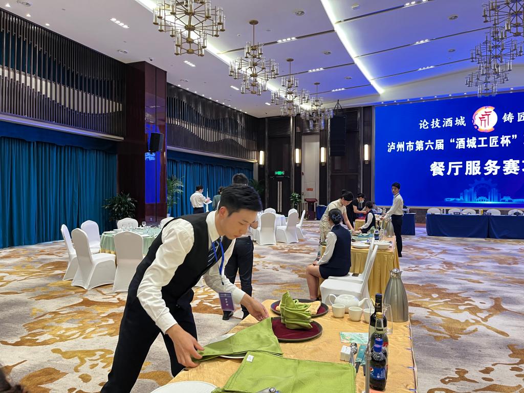 6月10日,泸州市第六届“酒城工匠杯”职业技能大赛在我校成渝双城经济圈川南公共实训基地开赛。来自四县三区,泸州老窖股份有限公司、泸州市社会福利院、四川化工职业技术学院等各行业企业和高校的160名技能技术选手参加了品酒、中式烹调、养老护理、汽车维修、育婴员、家政服务、餐厅服务、直播销售8个赛项的角逐,展示了酒城工匠“重技术、强技能、铸匠心”的良好精神风貌。