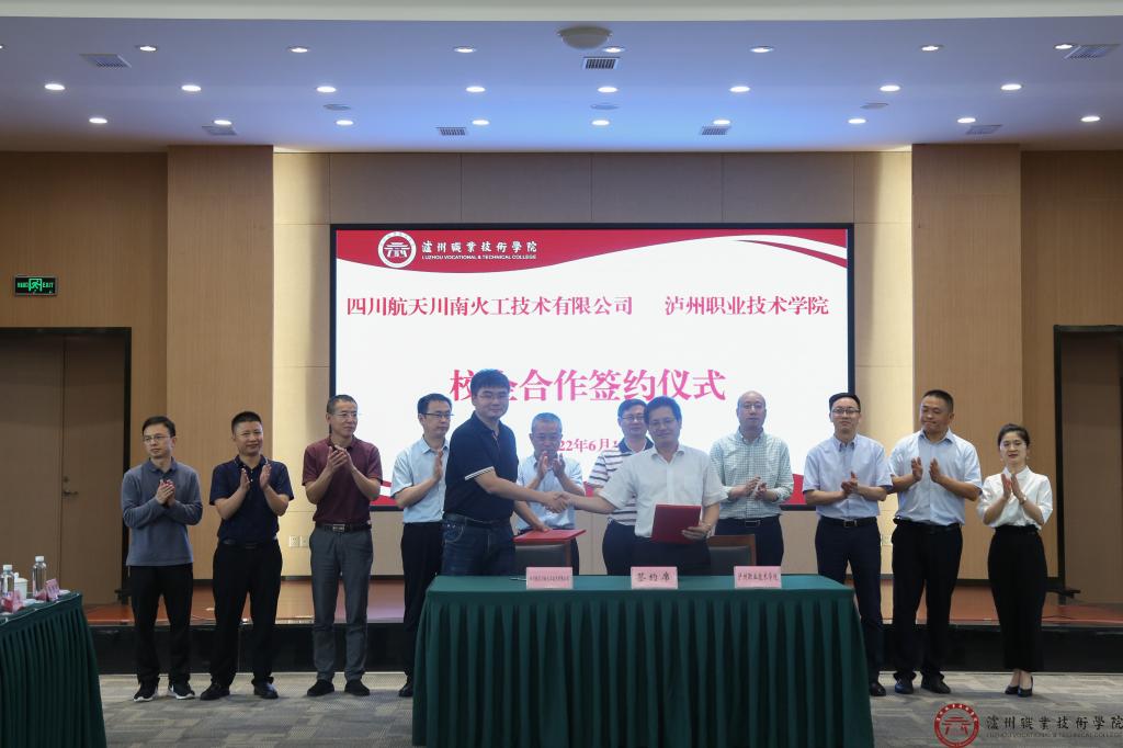 多年来,学校与四川航天川南火工技术有限公司保持着良好的长期合作,共同组建了“泸州市航天产业先进制造科技创新战略联盟”,围绕人才培养、科研合作和关键技术攻关展开深度合作。学校成立由四川航天川南火工技术有限公司特级技师、享受国务院政府特殊津贴专家、国家级技能大师工作室负责人、全国五一劳动奖章和中华技能大奖获得者杨尹渝为特聘专家的大师工作室,校企共创航天点火装置等项目,先后获得“中国国际互联网+大学生创新创业大赛”省赛金奖、国赛铜奖,“挑战杯”大学生课外学术科技作品竞赛四川省特等奖和黑科技赛项国家“卫星”级作品称号;先后有多批次学生赴公司实习和就业,部分学生已成长为公司的一线技术骨干,学生先明艳获得了四川省五一劳动奖章。