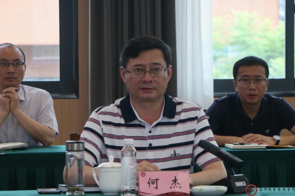 何杰在致辞中感谢四川航天川南火工技术有限公司长期以来对学校的关心和支持,并介绍了学校围绕提质晋位升格目标,持续推动创新发展、开放发展、共享发展,在创新集团办学模式、高校基建模式、内生性产教融合育人模式和高层次人才队伍建设、人才培养工作等方面取得的成就。