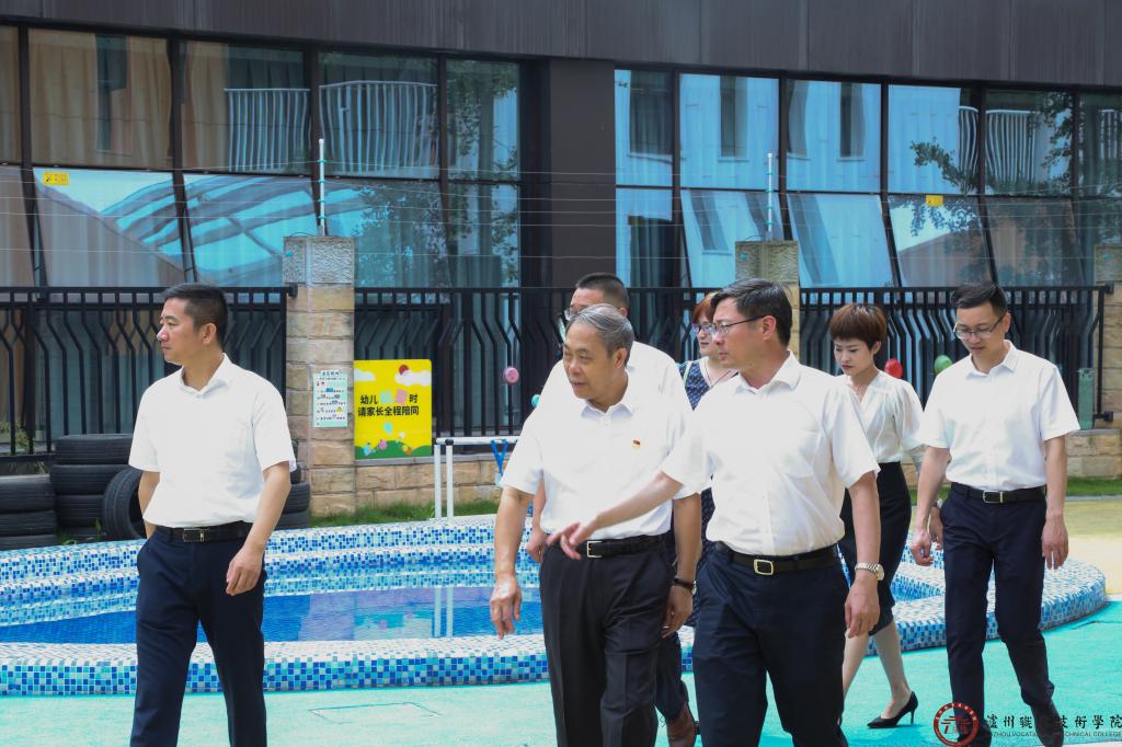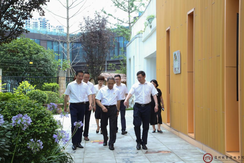 讲座前,蒋辅义参观了我校玉阶广场、启明广场、经纬诺博幼儿园等,对我校近年来在基础建设、产教融合、人才培养等方面取得的成就表示赞扬。