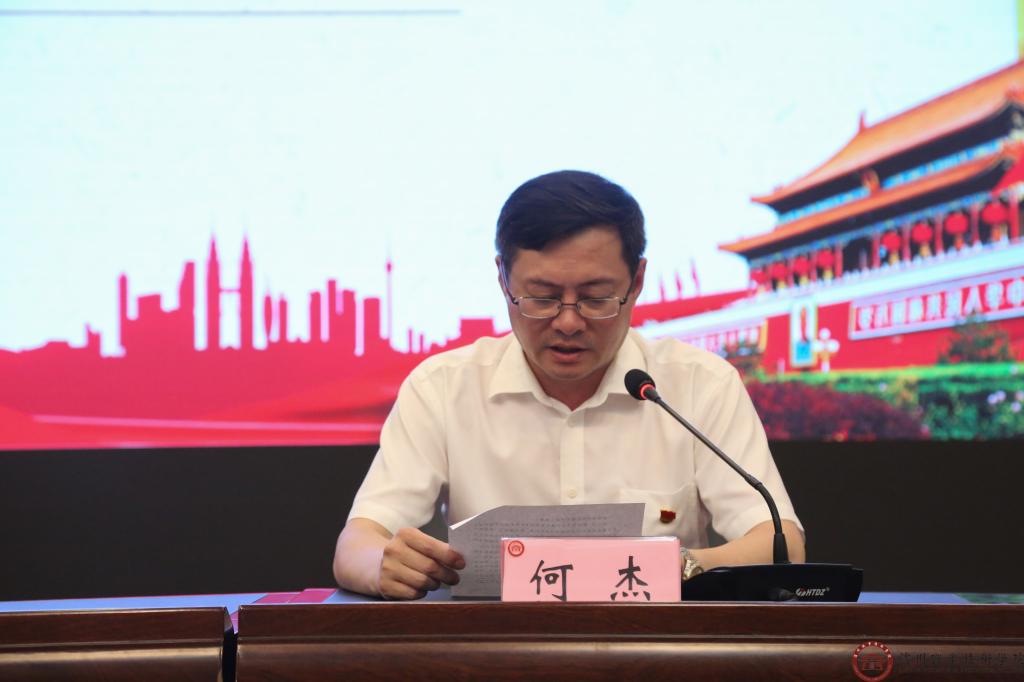 6月14日,学校邀请四川省区域发展学会名誉会长蒋辅义到我校开展“坚持中国共产党对一切工作的全面领导”专题讲座。学校党委书记何杰主持讲座。