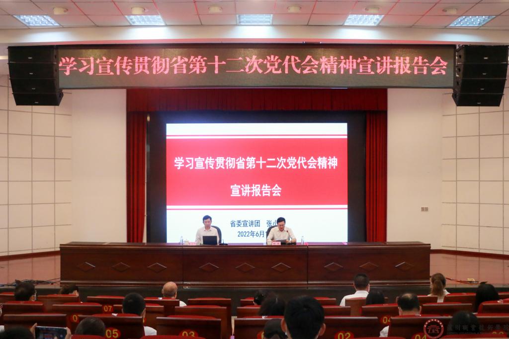 为深入学习宣传贯彻省第十二次党代会精神,6月16日,省委宣讲团高校宣讲分团成员、西南石油大学马克思主义学院教授、硕士生导师张小飞到我校作《高起点谋划,高质量发展,奋力开创学校工作新局面》宣讲报告。学校党委书记何杰主持报告会并讲话。