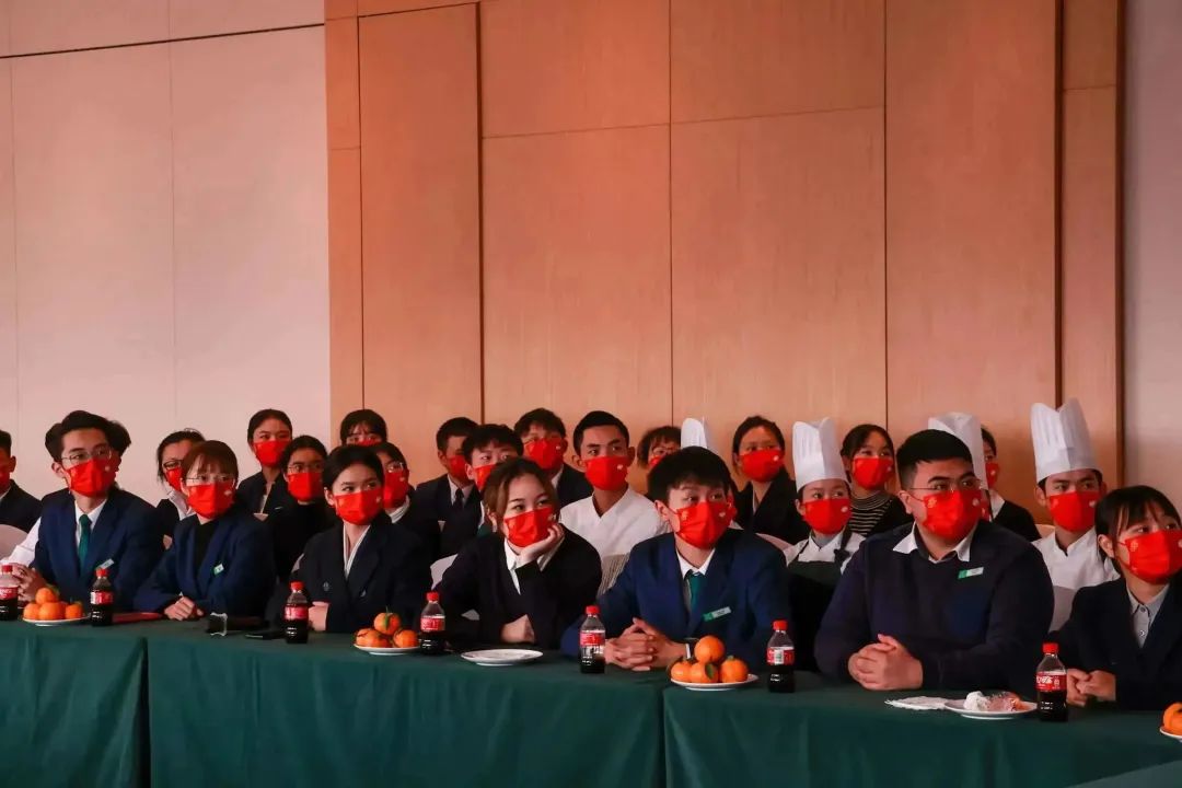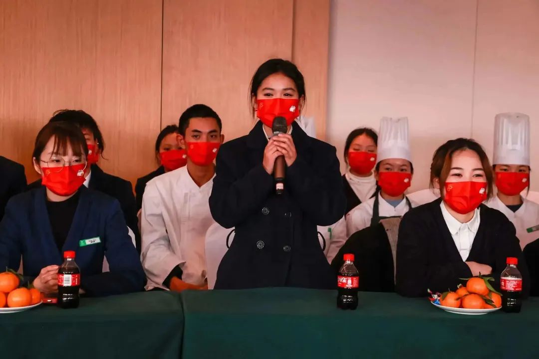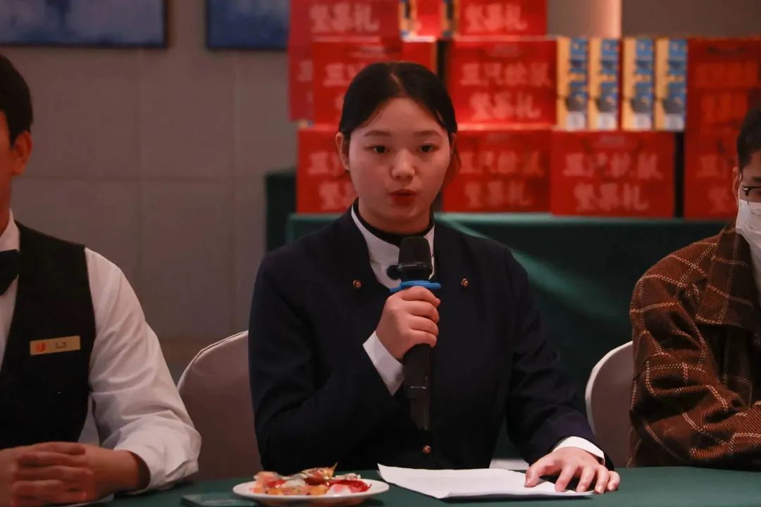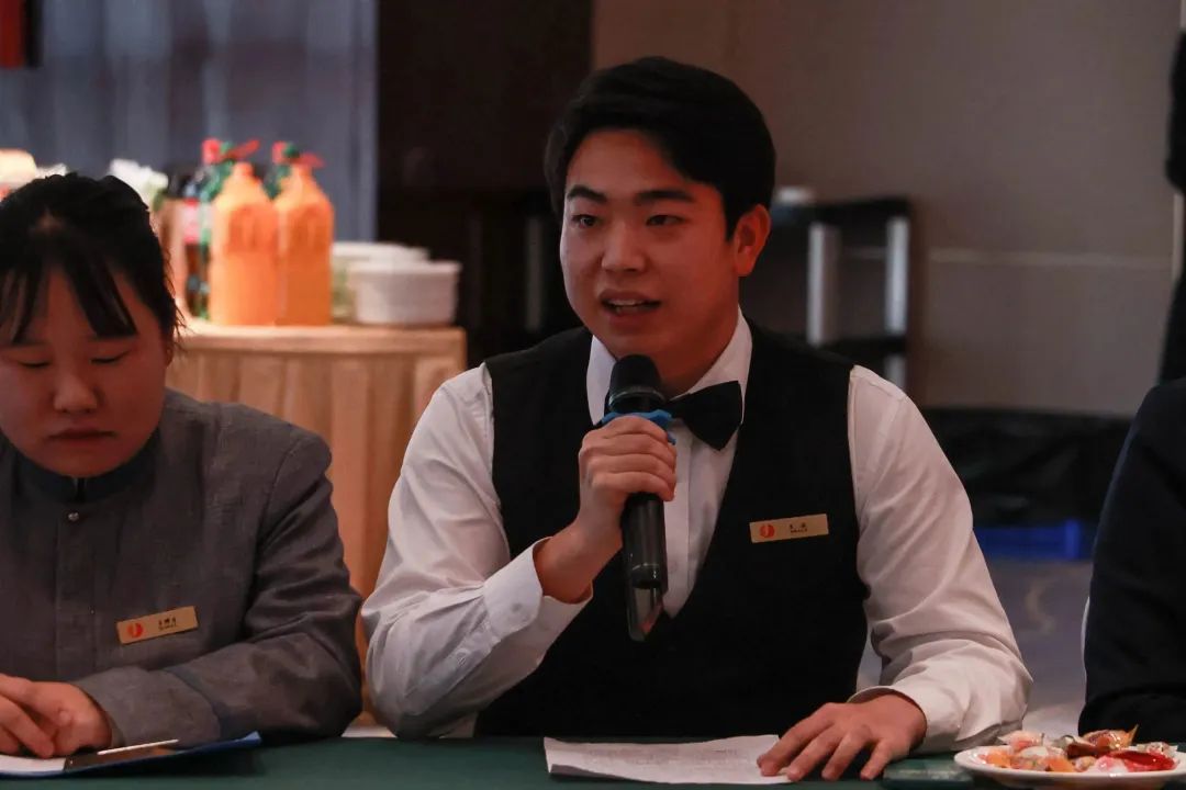 在学校校内生产性实训基地——泸州建国饭店、龙涧假日酒店,同学们对上一阶段实习感受和收获进行了分享,表达了对学校提供实习平台的感谢之情。