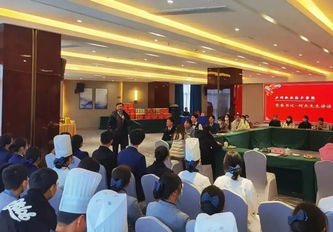 1月19日,学校党委书记何杰带队慰问泸州建国饭店、龙涧假日酒店、酒城文化创意美食街春节留校实习学生,为他们送上新春祝福和问候,并赠送新春礼包。学校党委常委、副院长熊剑、银盈陪同慰问。